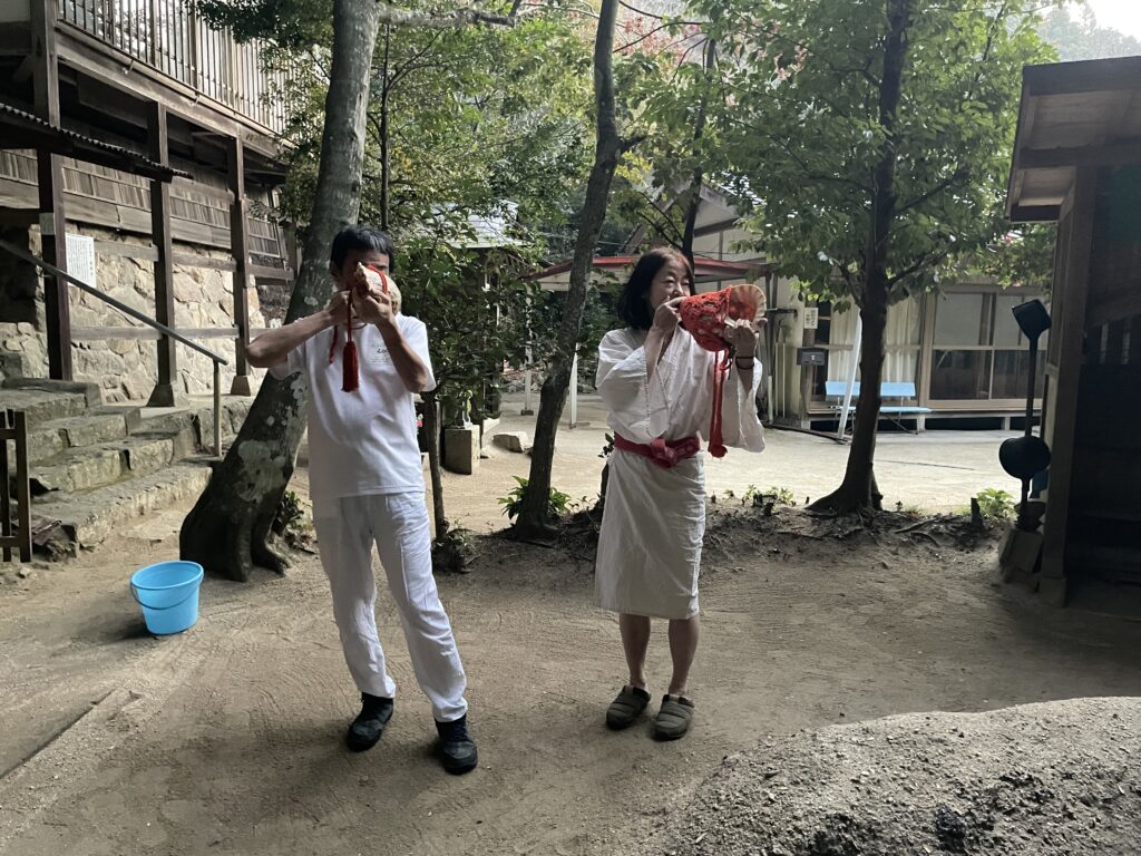 サクサクと流れるように進行するので、安全祈願の最中にお唱えしながら2回目のお湯をバケツに注ぎに走ります。