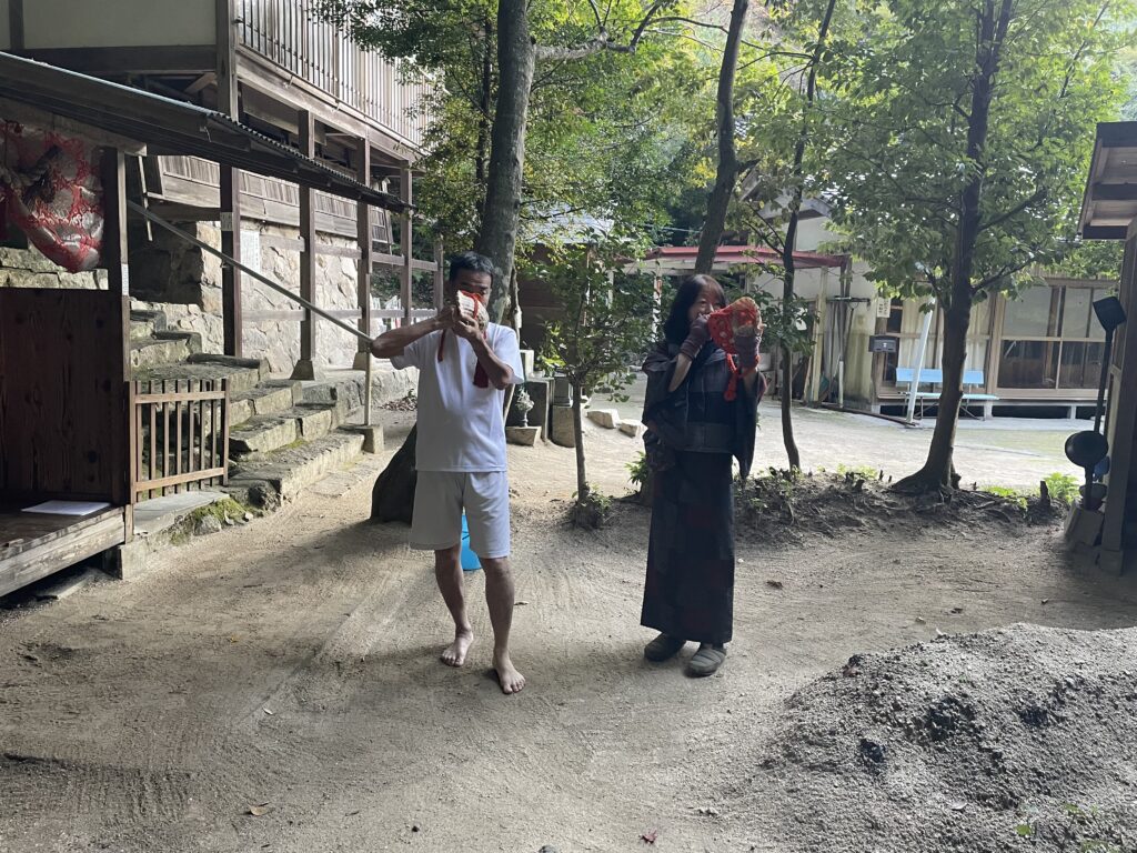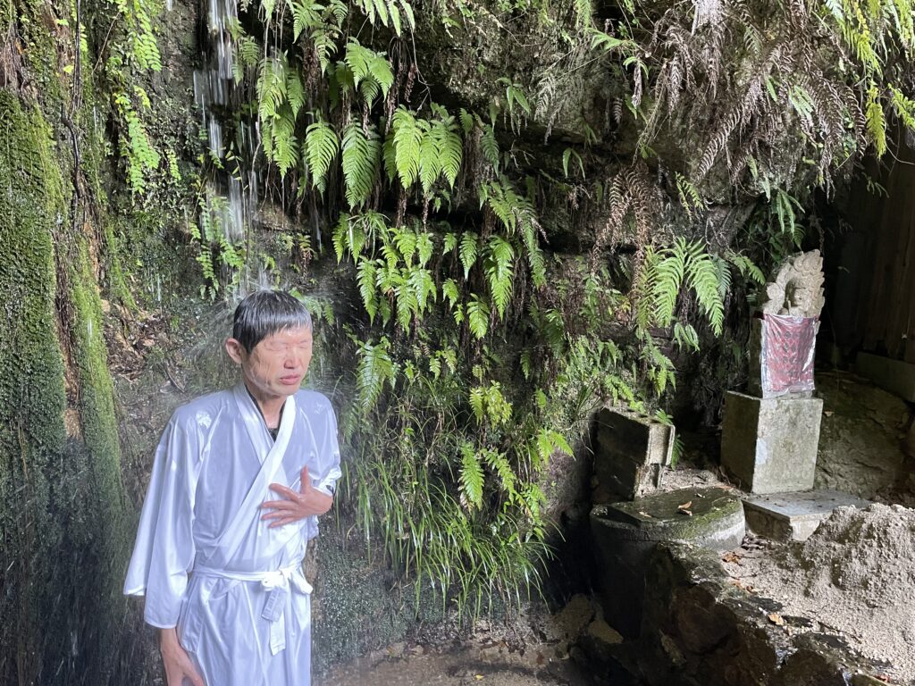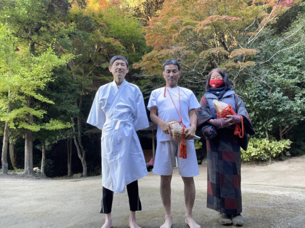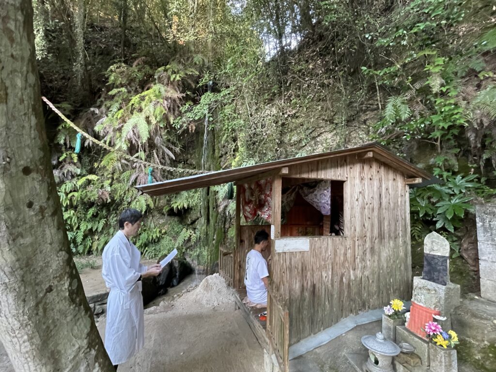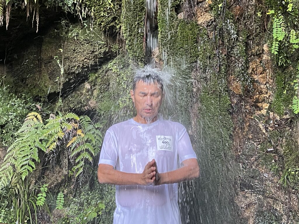 滝入りの順番を待つ間、靴を履いていると水に足を浸けたときの冷たさがいや増すから早めに靴を脱いで裸足で土の冷たさに足を慣らしてらっしゃった今日。