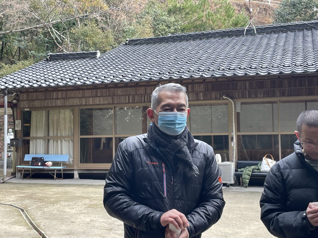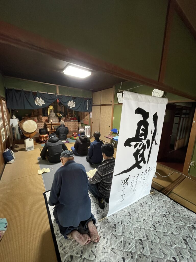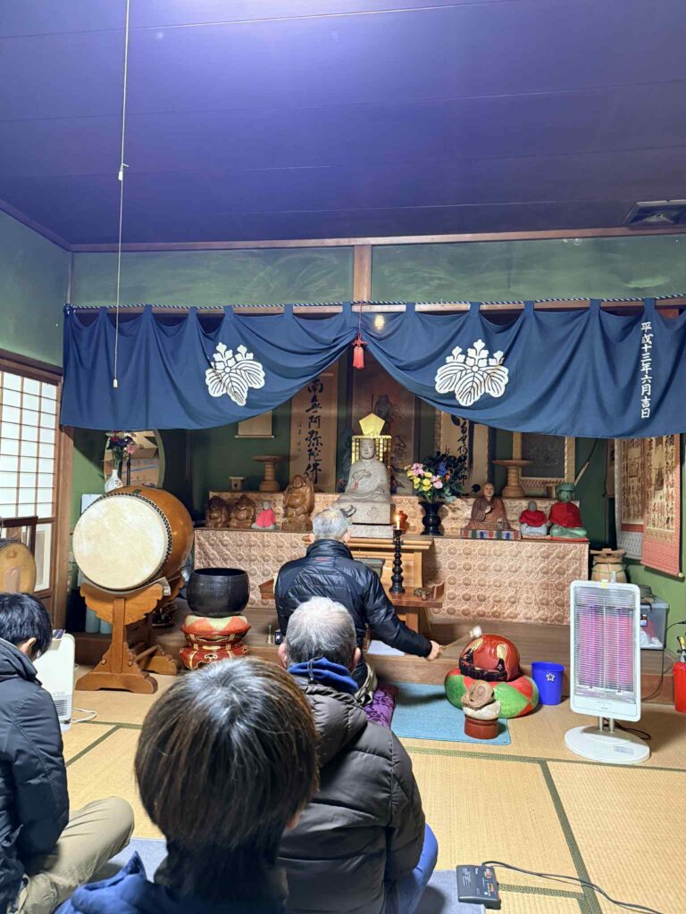 滝の観音のSさんが、ホットカーペットや電気ストーブなどをご準備くださった庫裏で、温まりながら9時15分開始。