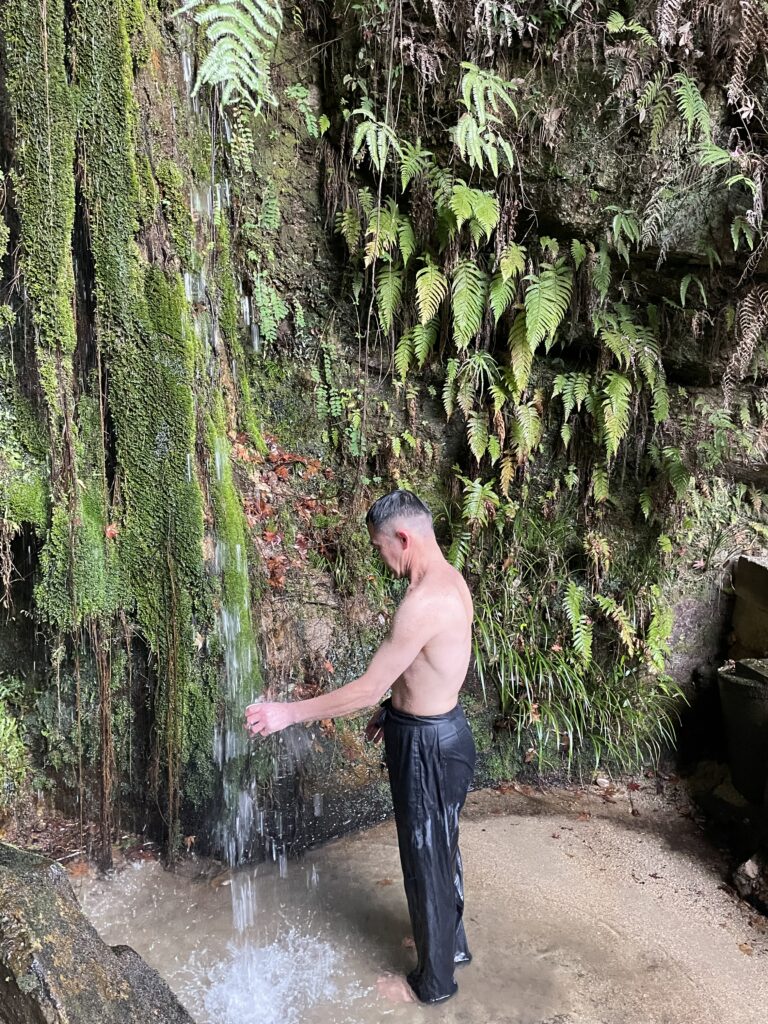 滝に入っている時よりもむしろ、滝から出たあとのほうが震えが止まらなくて、予め用意した熱々のお湯が入ったバケツに手を浸け、足を浸し、着替えてなお震えは止まりません。