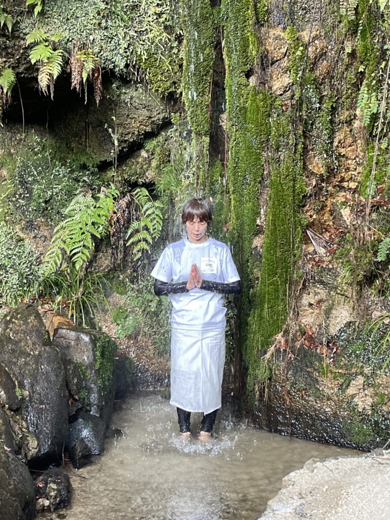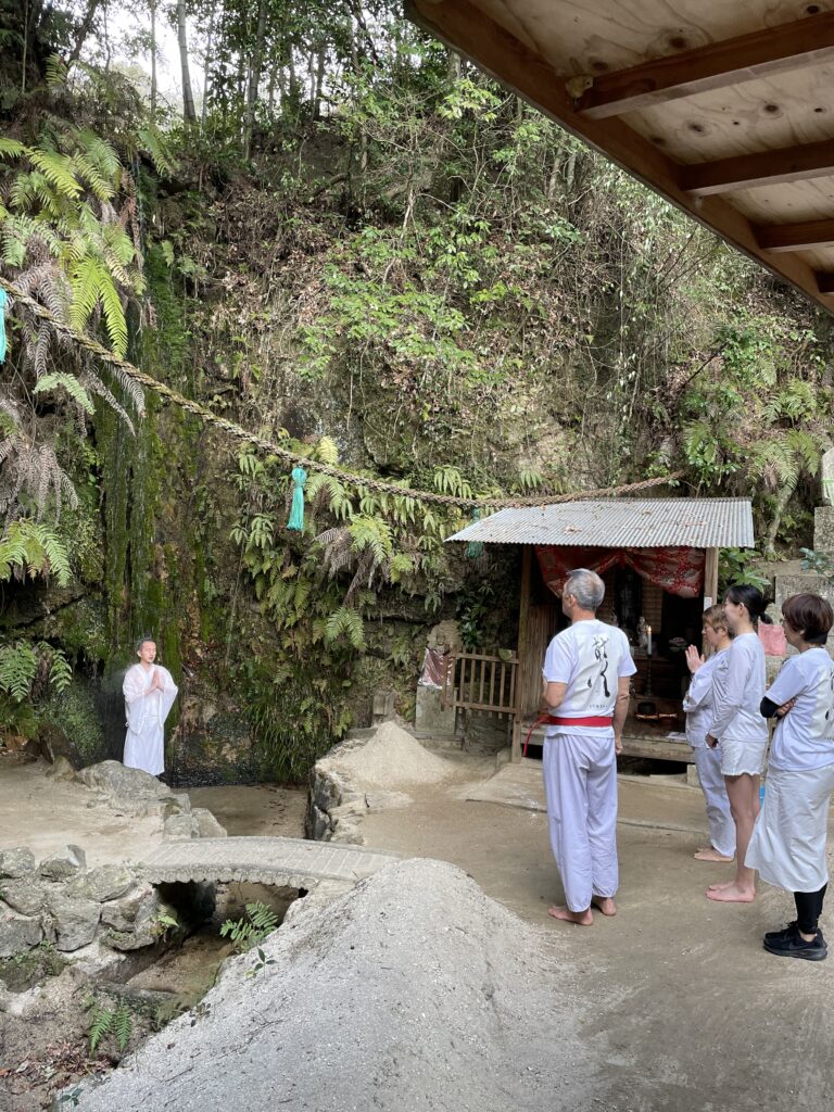 二度目のお2人が入られて、残り2人となると、代表Kさんが「じゃぁ」と先に入られます。冬の寒い時は最後にならないようにしてくださるのは、最後から二番目の方は、滝に入って出た後、最後に入るひとの写真を撮るために、待ってくださるため。