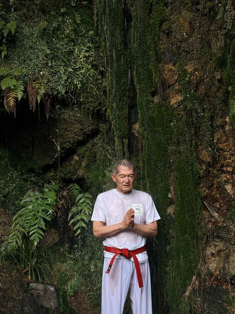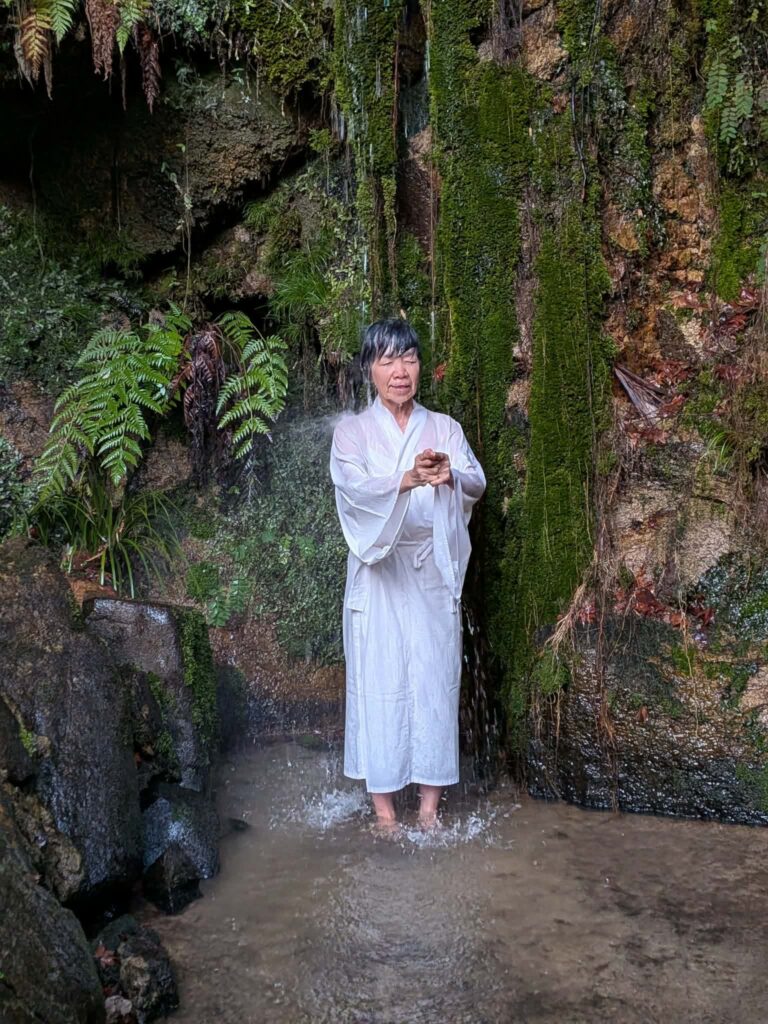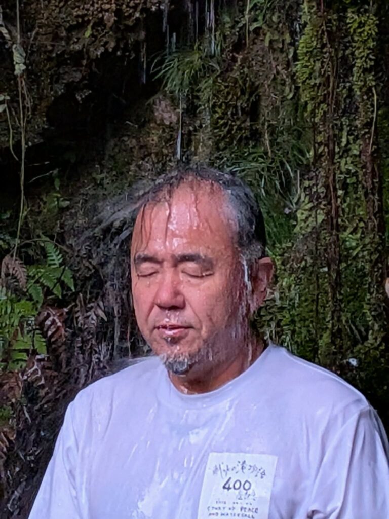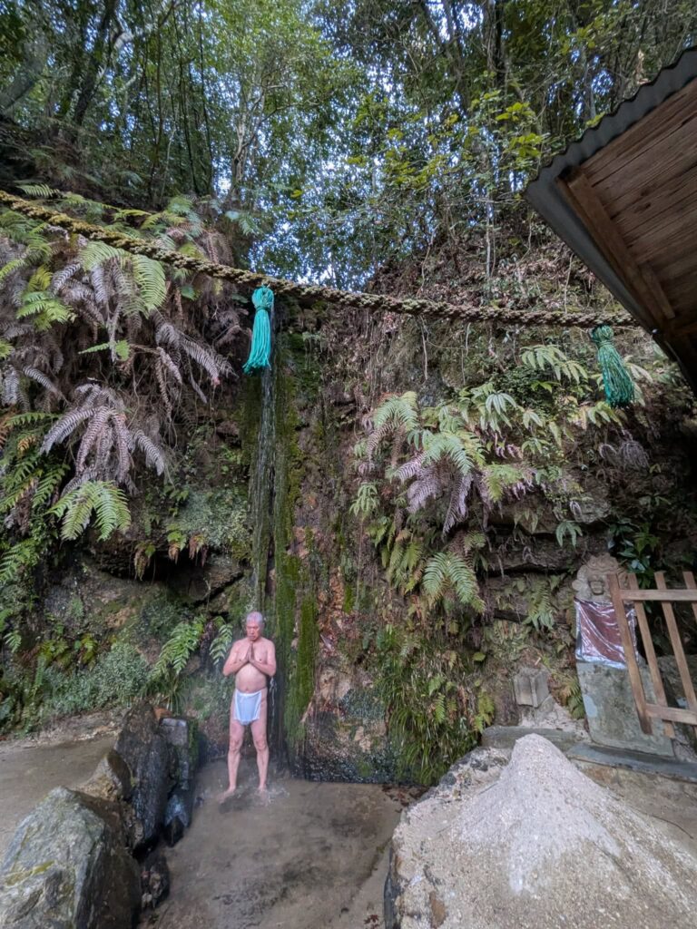 滝のなかで微笑んでるSさん。気持ち良さそう。