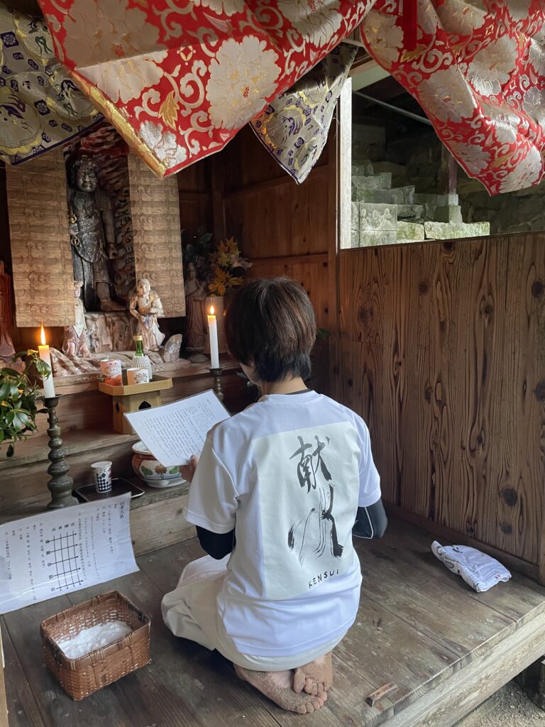 3時半に起きて、心身を整えて滝に臨まれたMさん。先達をうけたもうって心身が引き締まったり、いざやってみると「ここどうだったっけ?」とはっとしたり、いろんな気づきがたくさん。
