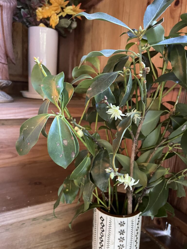 始める前に、1月に変えたお樒が、冬中持って、そして花を咲かせていました!ぱしゃり♪