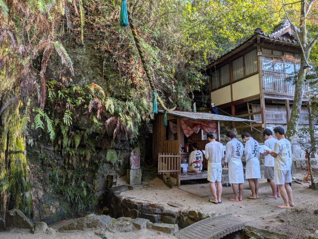 滝入りを見ている初参加の皆さまを、Hさんが滝つぼ近くに誘導くださっているのが滝のなかから見えてなんだか緊張?こそばゆい。